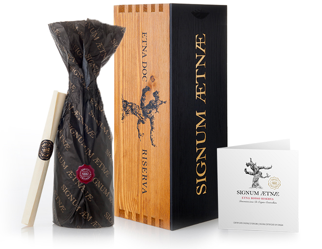 L’Etna maestoso e dirompente è anche il custode gentile del vigneto del Signum Aetnae. Il vulcano più alto del continente europeo, racconta una storia di viticultura che incanta chi l’ascolta. Da questo scrigno prezioso nasce il predestinato, Il sigillo del Vulcano, il figlio prediletto della viticoltura eroica di montagna. Signum Aetnae è l’autentico testimone di un’attività di difesa centenaria esercitata dal vulcano su vigneti che hanno resistito al trascorrere del tempo e alla fillossera.